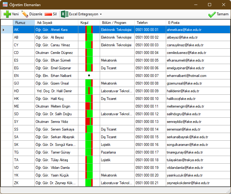 Not: Listedeki tüm isim ve iletişim bilgileri uydurma ve gerçek olmayan bilgilerdir.