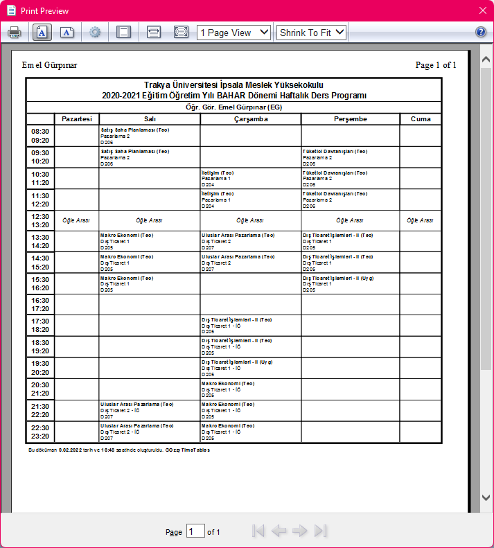 Önizleme ile rapor çıktısının sayfada nasıl durduğunu kontrol edebilirsiniz. Eğer rapor içeriği bir sayfaya sığmıyorsa, içeriği küçültebilirsiniz. Dilerseniz bu aşamada raporu doğrudan yazdırabilirsiniz.